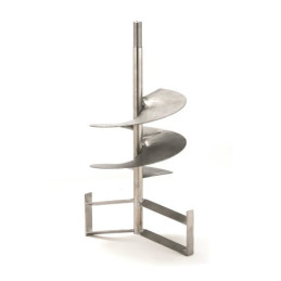 La combinación de un agitador con forma de paleta y un tornillo sin fin mueve la miel de abajo hacia arriba durante el proceso de cremado o homogenizado.